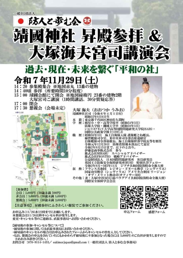 - 【お知らせ】令和7年11月29日 大塚海夫氏(靖國神社宮司)過去・現在・未来を繋ぐ「平和の社」