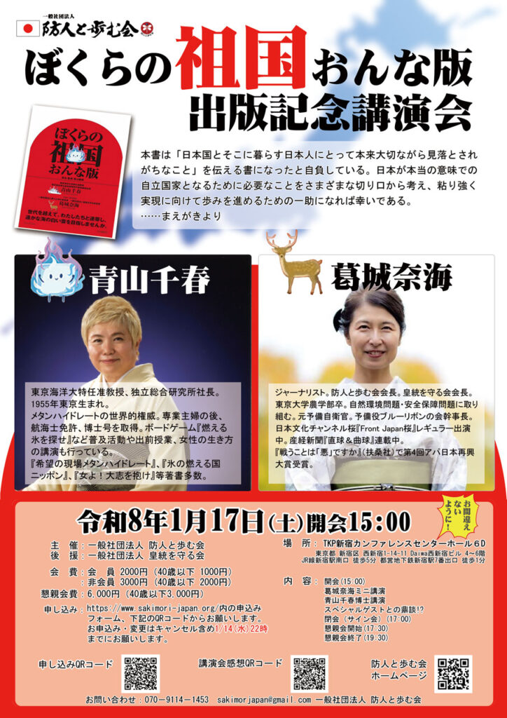 - 【お知らせ】令和8年1月17日 「ぼくらの祖国 おんな版」出版記念講演会